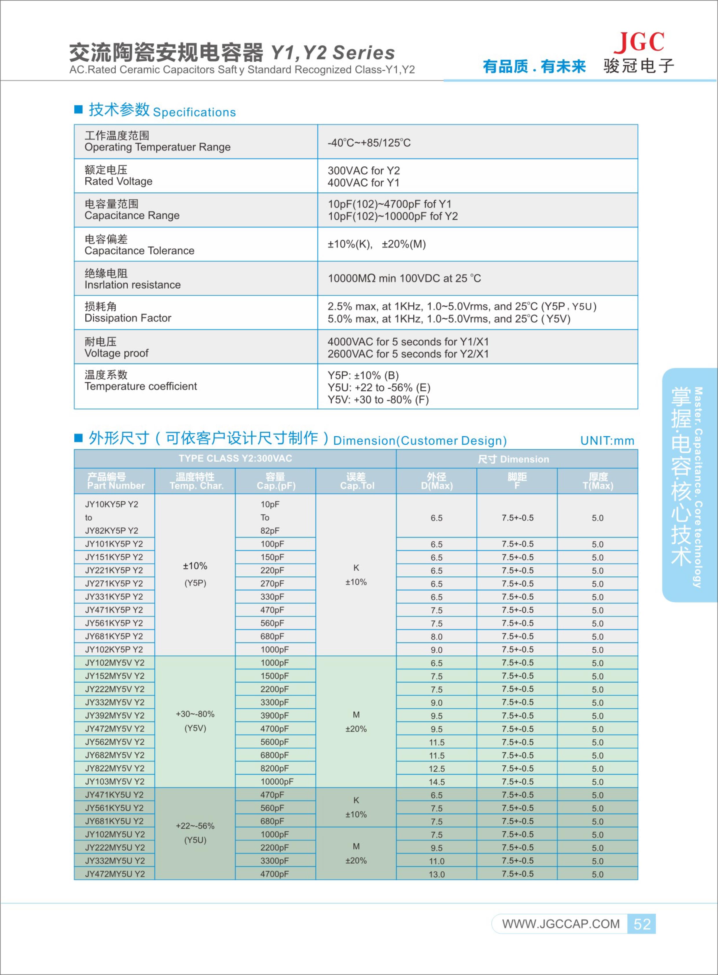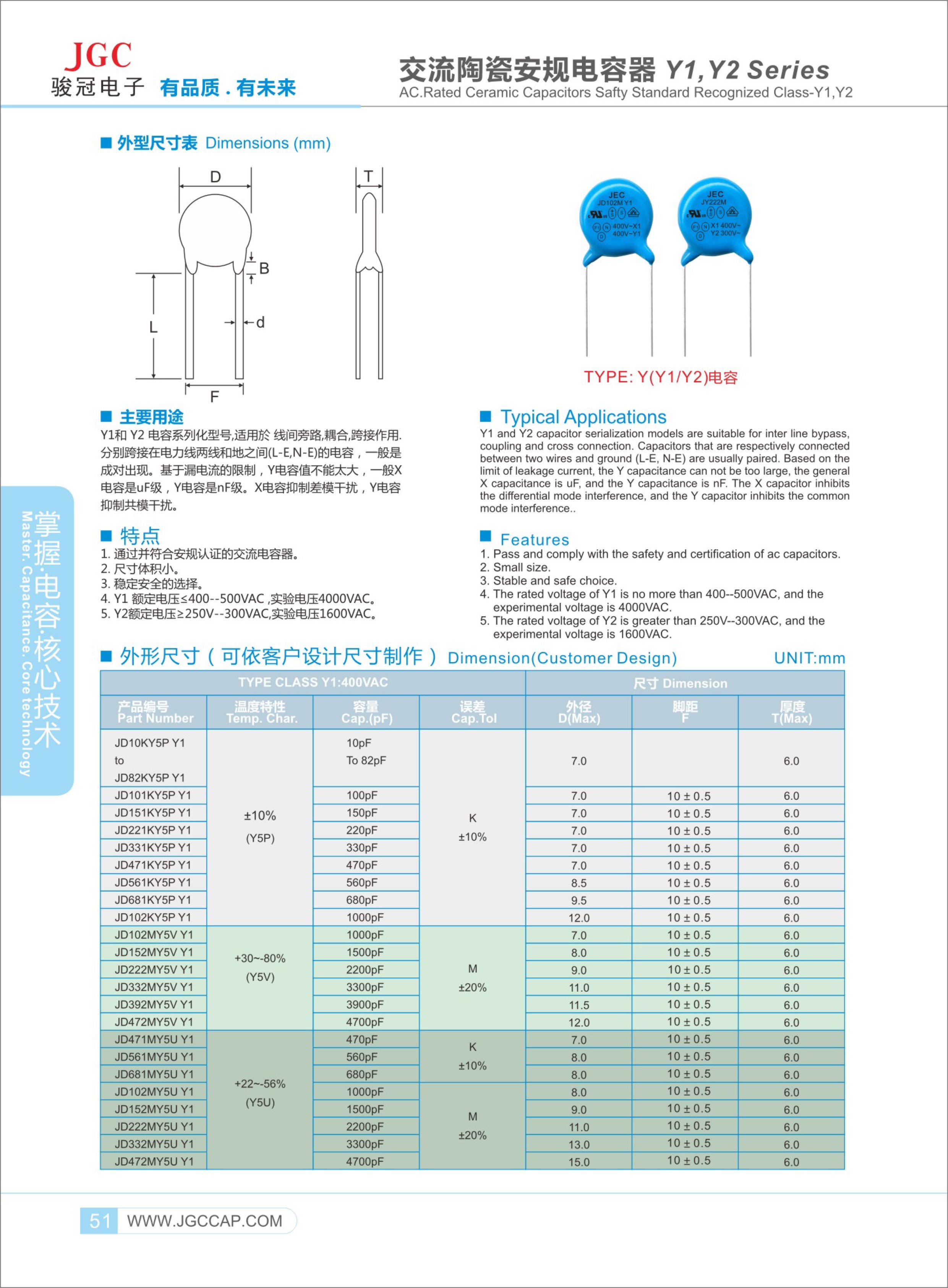 Y1電容器 額定電壓≤500VAC,峰值電壓等于8 kV,實(shí)驗(yàn)電壓4000VAC.